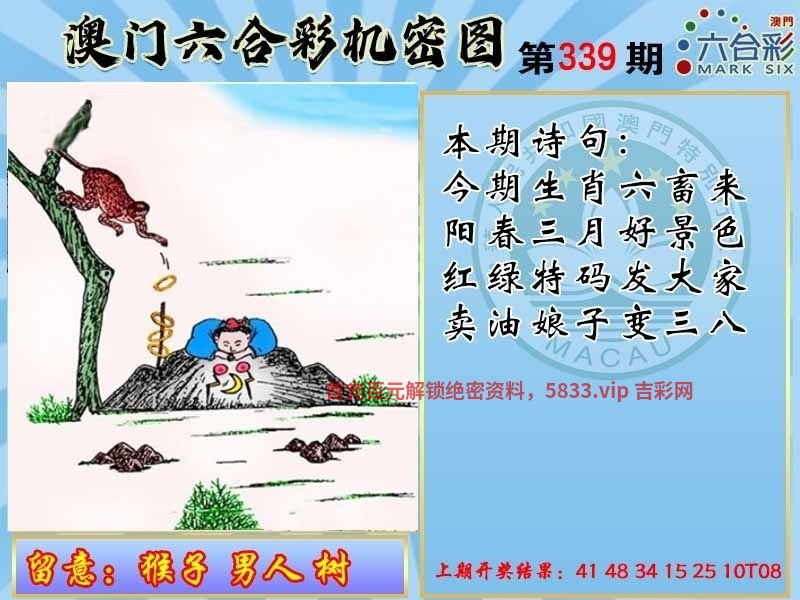 | 339期【解机密图】:开(马48) 今期生肖六畜来,阳春三月好景色,红绿特码发大家,卖油娘子变三八。 【解】:今期生肖六畜来可解家禽的生肖,红绿特码发大家可解红波绿波的特码。 【综合取特】马虎兔狗龙鸡 【主特三肖】马虎兔 【提示波色】蓝波 |
